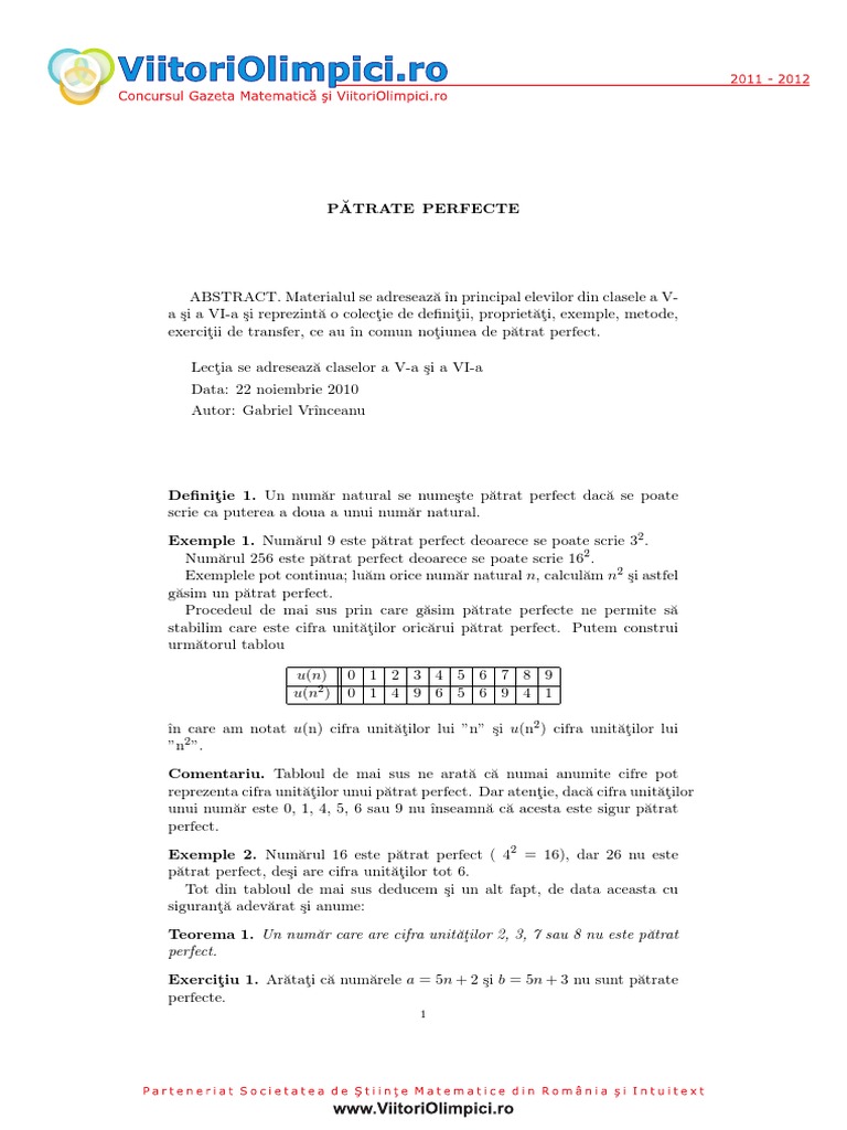 0 1 4 5 6 9. Un real ajutor iti vor fi si lectiile interactive intuitext dar si caietele realizate de editura. Trimisă pe 26 ianuarie. Un numar natural se numeste patrat perfect daca se poate scrie ca puterea a doua a unui numar natural.