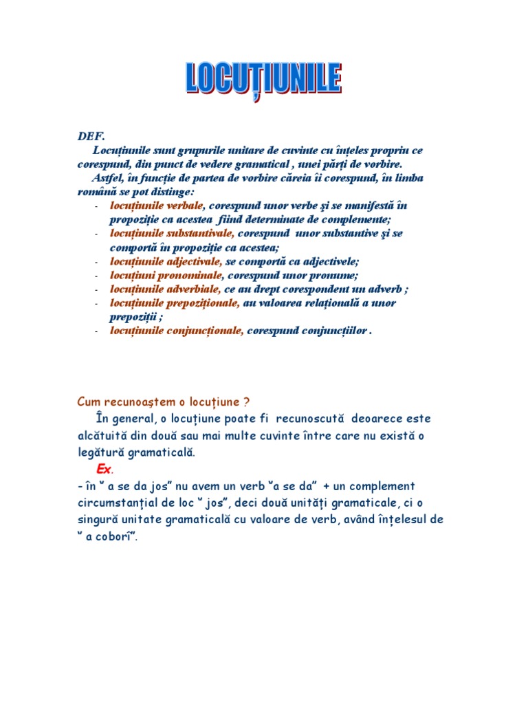 Exemple De Locutiuni Verbale