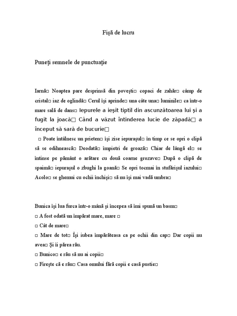 Fisa presupune completarea textelor date cu semnele de punctuatie corespunzatoare. învăţământ primar limba şi literatura român ă. Cucky scoala gimnaziala nr 21 timisoara. La al doilea exercițiu copiii exersează utilizarea punctului prin alcătuirea unor propoziții enunțiative.