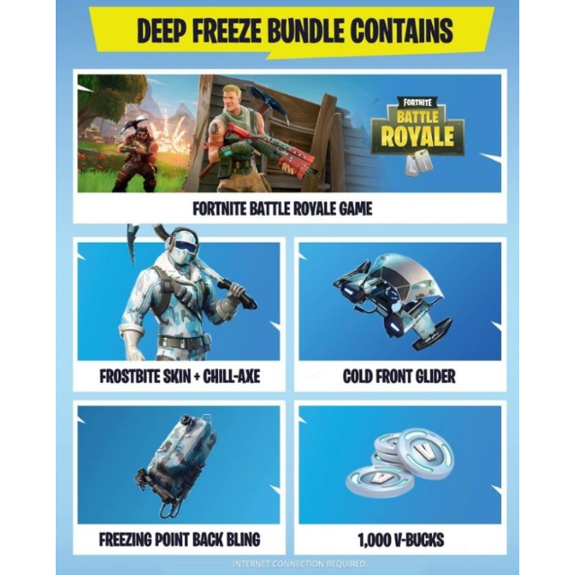 The deep freeze bundle includes install of free fortnite battle royale game. Frostbite outfit cold front glider chill axe pickaxe and freezing point back bling.