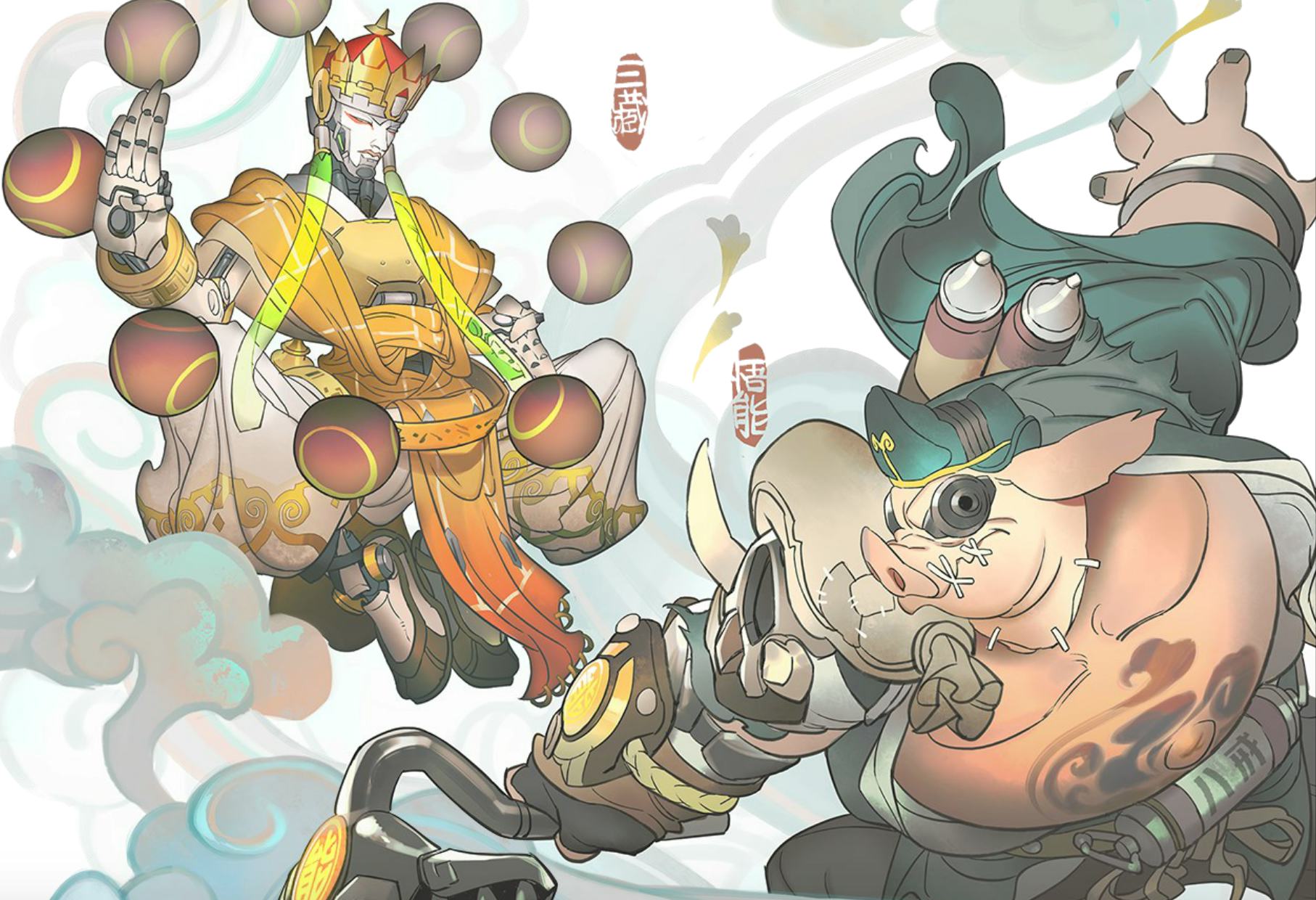 Just as they are preparing to continue on their journey taishang laojun appears and tells them that the two demon kings are actually the two boys in charge of watching over his furnaces. New skins have been leaked for year of the rooster event. The skins themselves feature zenyatta winston reinhardt and roadhog dressed as characters from the novel including winston as the monkey king sun wukong and reinhardt as sha heshang the river monster. Zenyatta reinhardt roadhog and winston may get tang priest friar sand pig and sun wukong monkey king skins respectively but who are all these characters what is journey to the west and why.