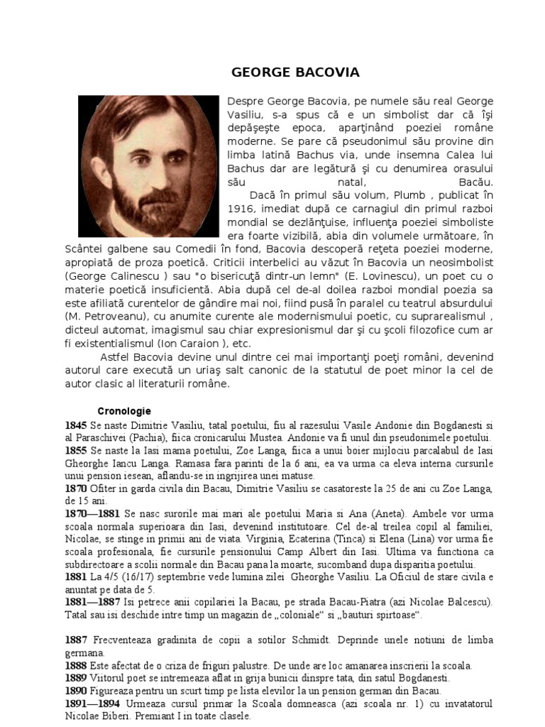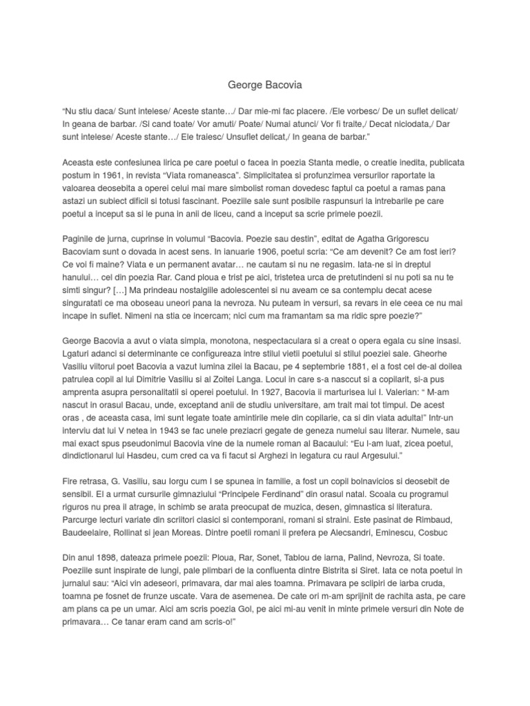 17 septembrie 1881 bacău d. Sunt solitarul pustiilor piete cu triste becuri cu pala lumina. 22 mai 1957 bucurești a fost un scriitor român format la școala simbolismului literar francez. La fel ca multe alte texte de ale lui george bacovia și această operă are ca punct de referință tema morții eul liric anticipând acest moment.