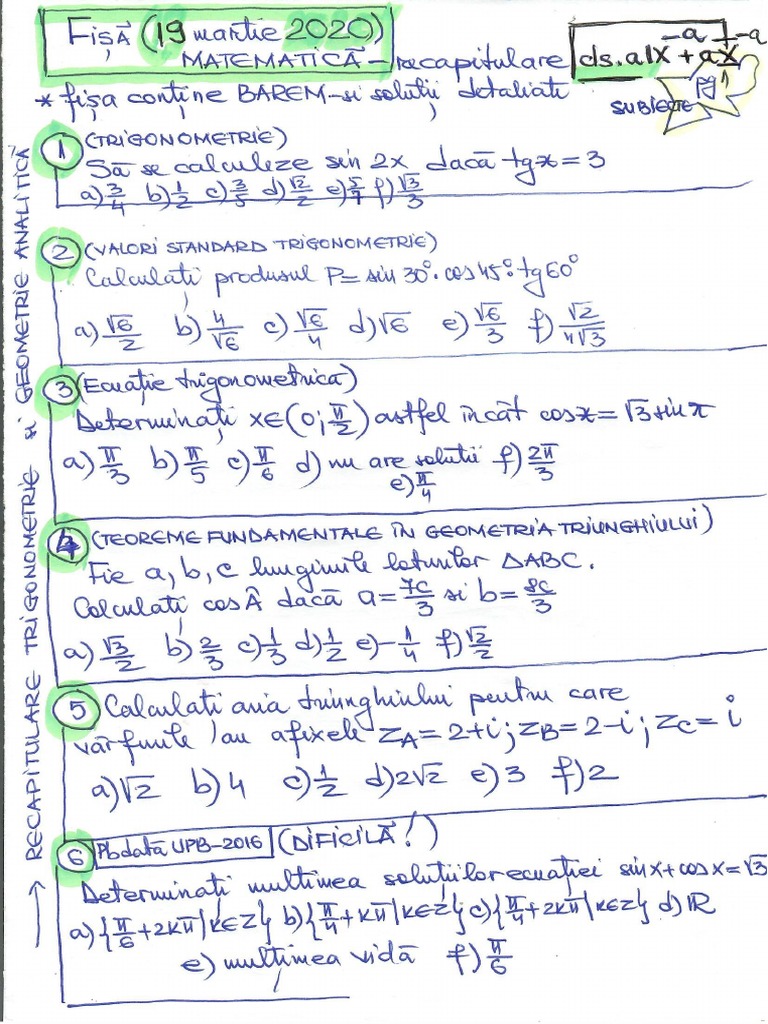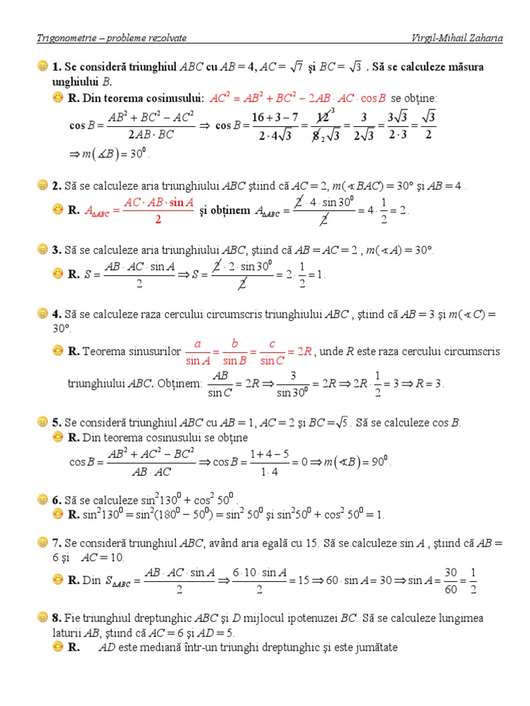 Cos ˇ 2 sin. Så se calculeze cosa dacå a 4. Tg ctg 1. 0 3 1 2 2 2 3 3 sin sin30 2 ab r r r r c 5se consideră triunghiul abc cu ab 1 ac 2 şi bc 5.