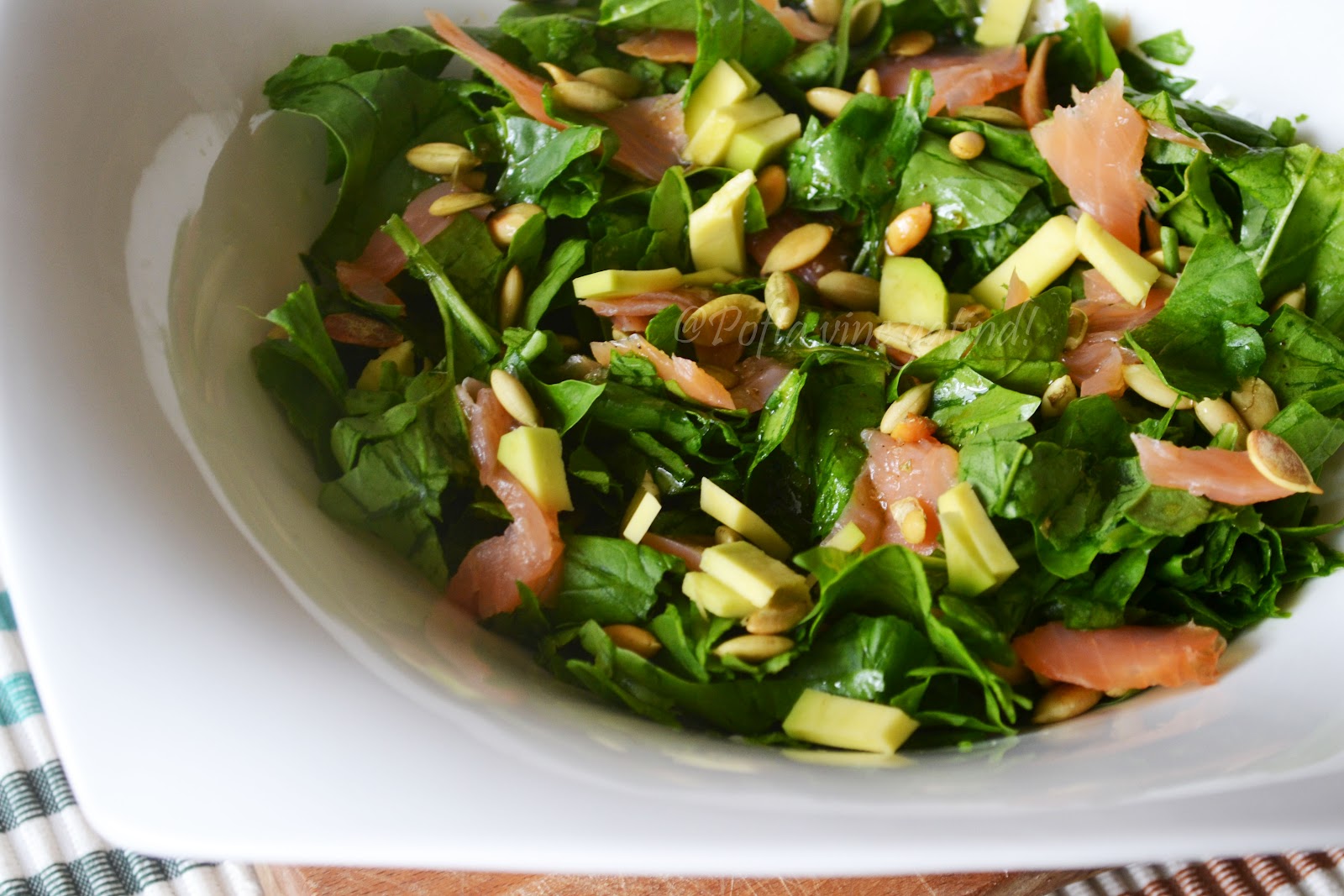 Curata avocado si taie l felii si inainte de a l pune in salata scufunda l in sos de la zeama de lime nu se va oxida. Salata de somon 56 voturi 6 59. Salata de spanac cu somon afumat este o salată modernă proaspătă şi gustoasă ce combină vitalitatea spanacului tânăr cu notele pregnate ale somonului afumat şi textura moale a fructului de avocado da ştim că nu e fruct decât din punct de vedere botanic cu cea a oului fiert. Această combinație am suprins o la nigel slater a cărui emisiune îmi place teribil el pregătind meniuri ușoare și simple.