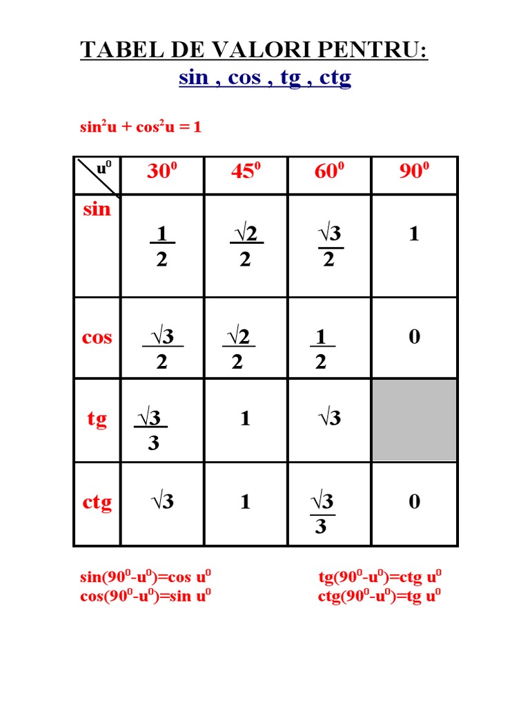 Values of sine of corner of sin 0 1 2 a root from 2 is divided by 2 a root from 3 is divided by 2 unit and minus unit. Valorile lui sin cos tg ctg sinus cosinus. A line opposite the letters of sin is named yet table of sines. Inecuatii de gradul i.