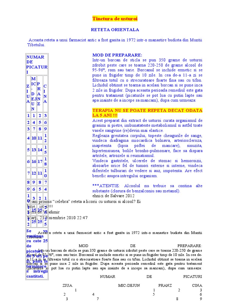 Tinctura de usturoi reteta tibetana. Reteta tibetana din tinctura de usturoi a fost descoperita intr o manastire budista din tibet si era folosita de calugarii tibetani pentru tot felul de afectiuni de la hipertensiune la boli de plamani. Reteta picaturi de macerat de usturoi este ferm conditionata de o unica si importanta restrictie. Pe 9 octombrie 988 o copie a acestei icoane a fost mutată de la korsun la kiev de către sfântul și marele cneaz vladimir prăznuit pe 15 iulie fiind cunoscută sub numele de icoana maicii domnului din korsun. Modalitatea de administrare a leacului obtinut folosind reteta tibetana cu usturoi este urmatoarea.