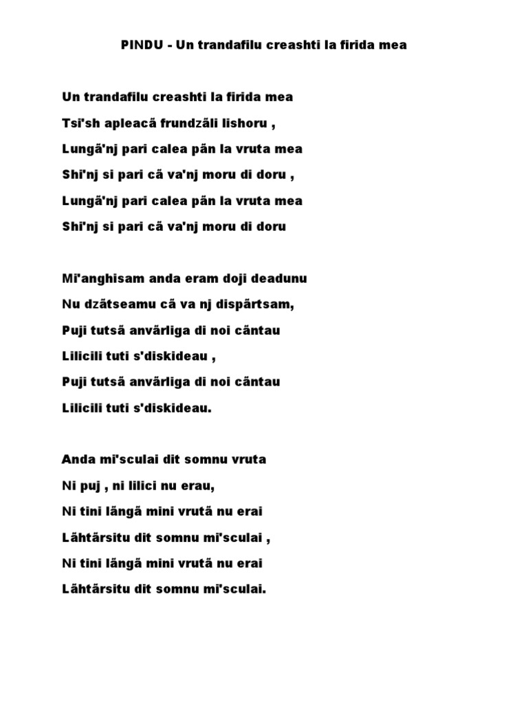 Un trandafir creste la firida mea lyrics. Lungă mi pare calea pân la iubita mea. Aboneaza te la canalul nostru. превод на песента un trandafil creashti la firida mea на pindu от арумънски на румънски. Un trandafir creste la fereastra mea ce si apleaca frunzele usor lunga mi pare calea pana la iubita mea mi se pare c am sa mor de dor lunga mi pare calea pana la iubita mea mi se pare c am sa mor de dor.