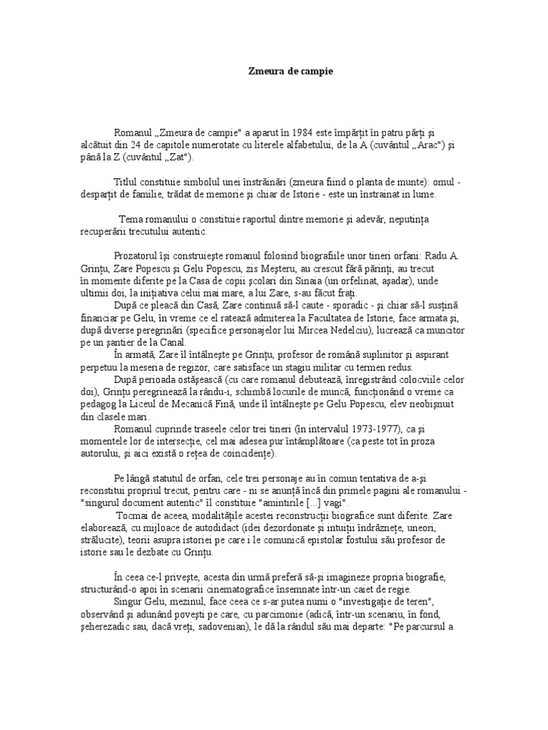 Zmeura de cîmpie editura paralela 45 piteşti 2015 248 p. Puterile literaturii în faţa politicului şi a morţii de adina diniţoiu editura tracus arte bucureşti 2011 526 p. Departe de a fi un roman impotriva memoriei zmeura de cimpie este un substantial roman al memoriei unul dintre cele mai tulburatoare din intreaga literatura romana postbelica in care memoria s a adapostit adesea. Vei gasi usor pe olx ro anunturi gratuite interesante din bucuresti ilfov si alte orase din tara si vei putea intra usor in legatura cu cei care le au publicat.